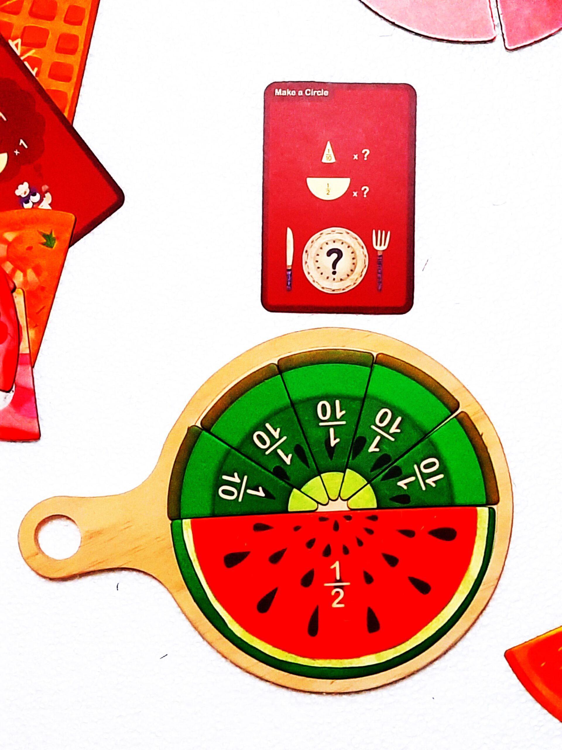 Układanka Yummy Food jest tak skonstruowana , aby w trakcie zabawy dziecko zapoznało się z podstawami ułamków, odróżnianiem części od całości , pojęcia równorzędności oraz porównywania liczb. Do tego służą kartoniki ze znakiem równości oraz ze znakiem mniejszości lub większości.