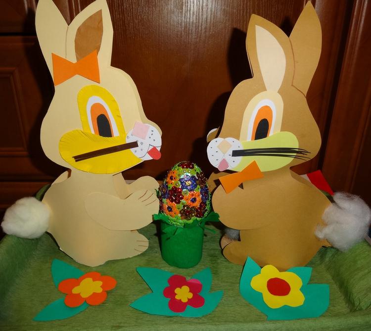 Zajączki z papieru na na zdjęciu wykonały pod opieką pani Kamili Sobaszek dzieci ze świetlicy w SP nr 104 w Warszawie.