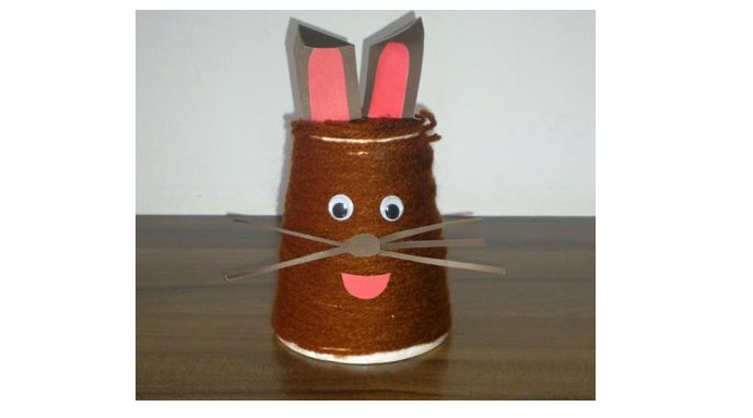 5. Za pomocą zszywacza przymocuj podstawkę do królika – można w niej umieścić pisankę lub własnoręcznie zrobioną marchewkę. Powodzenia 🙂