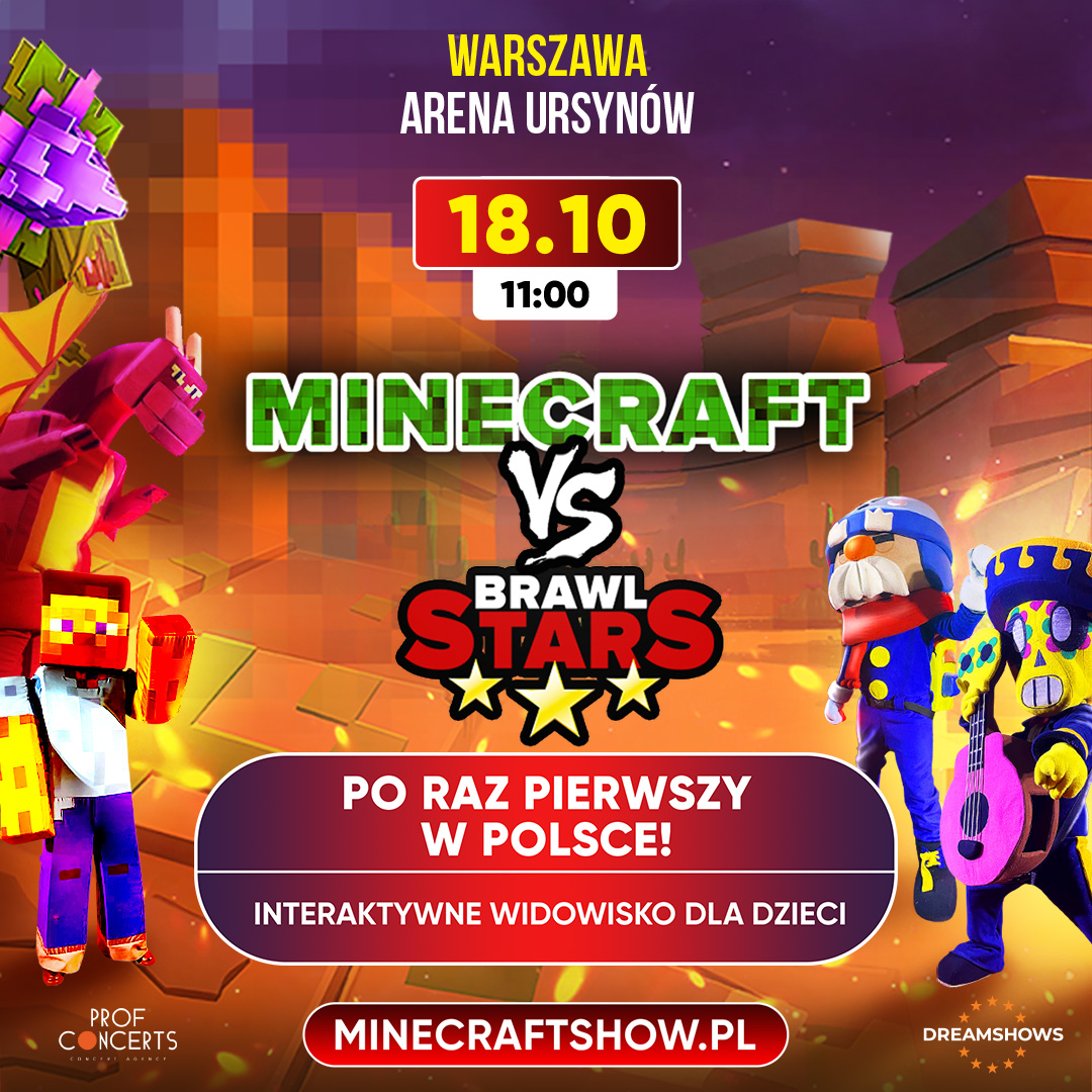 Po raz pierwszy w Polsce spotykają się wirtualne światy, które podbiły serca milionów dzieci na całym świecie. Ekscytujące, pełne przygód spektakle Minecraft vs. Brawl Stars oraz Minecraft i Brawl Stars ratują Roblox łączą najlepsze elementy kultowych gier wideo z widowiskiem interaktywnym.