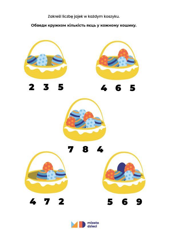 Zakreśl liczbę jajek w koszykach