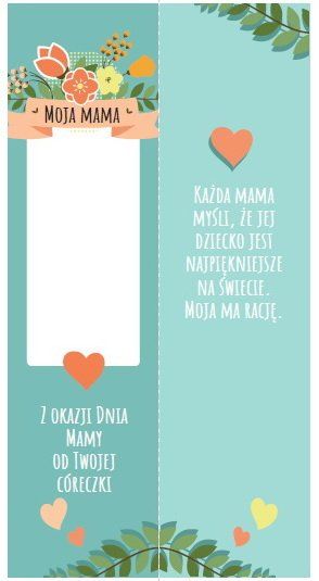 Zakładka do książki zawsze sprawdzi się na prezent – nie tylko dla mamy. Jednak z okazji Dnia Matki przygotowaliśmy specjalne wersje zakładek, które możecie pobrać, wydrukować, podpisać lub ozdobić portretem mamusi. Żeby zakładka była trwalsza, warto nakleić ją na sztywny karton lub zalaminować.